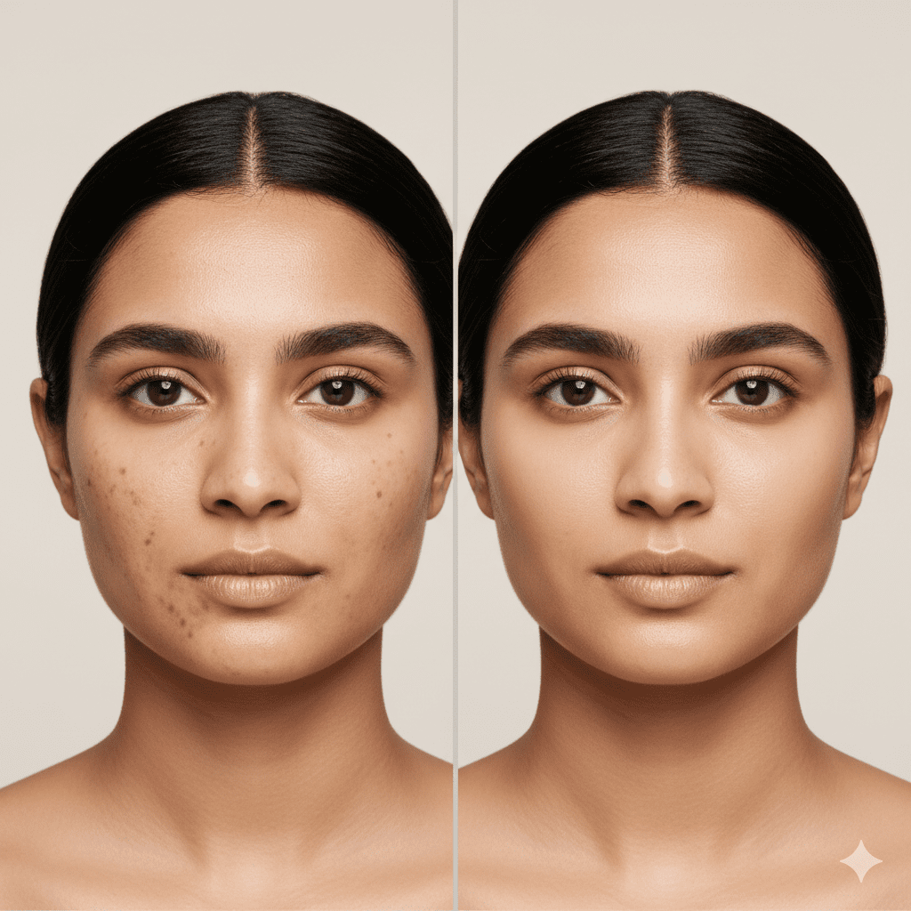Visible improvement in acne, scars, and skin texture with advanced dermatology treatments.